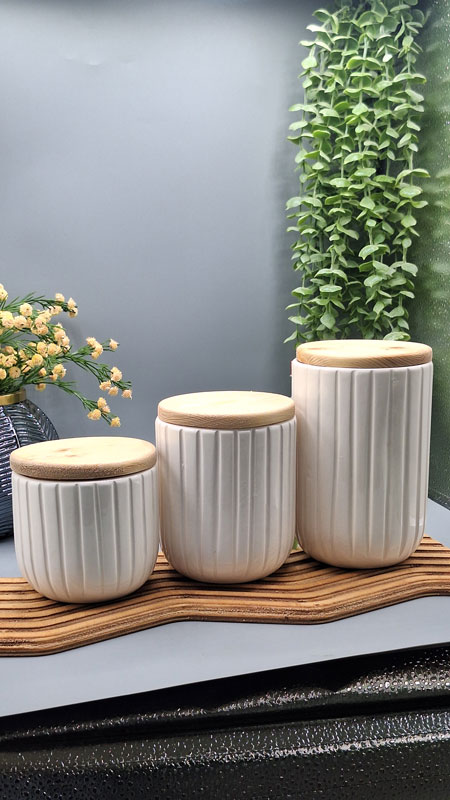 بانکه های سرامیکی شیاردار در سه سایز متفاوت همراه با درب چوبی با کیفیت عالی و قیمت مناسب