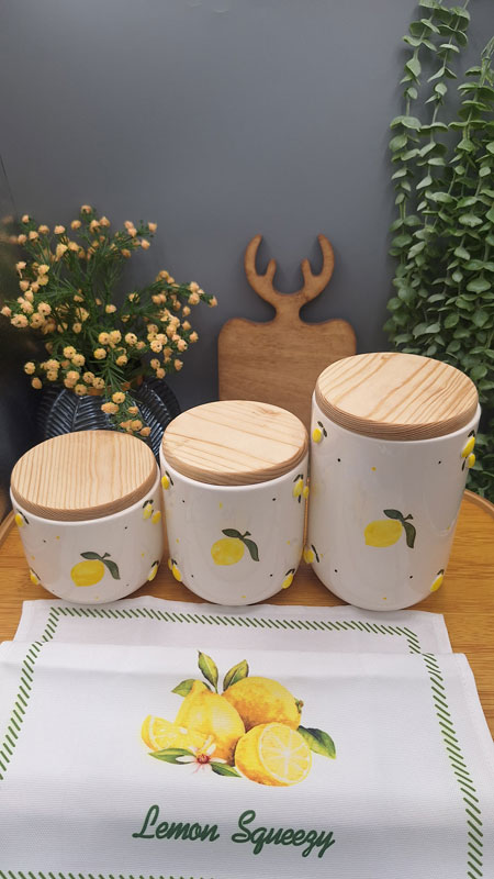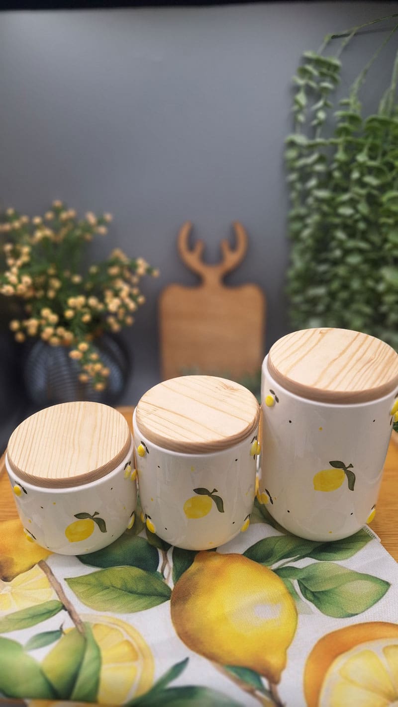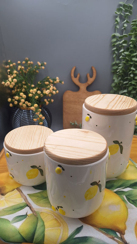 بانکه های سرامیکی پا سماوری بسیار زیبا طرح برجسته لیمویی در سه سایز با درب چوبی
