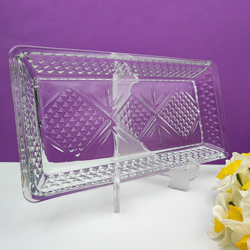 دیس بلوری شفاف پاناما، محصولی ایرانی باکیفیت، با طراحی نقش برجسته و قیمت عالی، زیبا و مقاوم. شیک و مناسب برای سرو غذا، دسر، شیرینی و فینگرفود در میز پذیرایی شما. قابل شستشو در ماشین ظرفشویی.