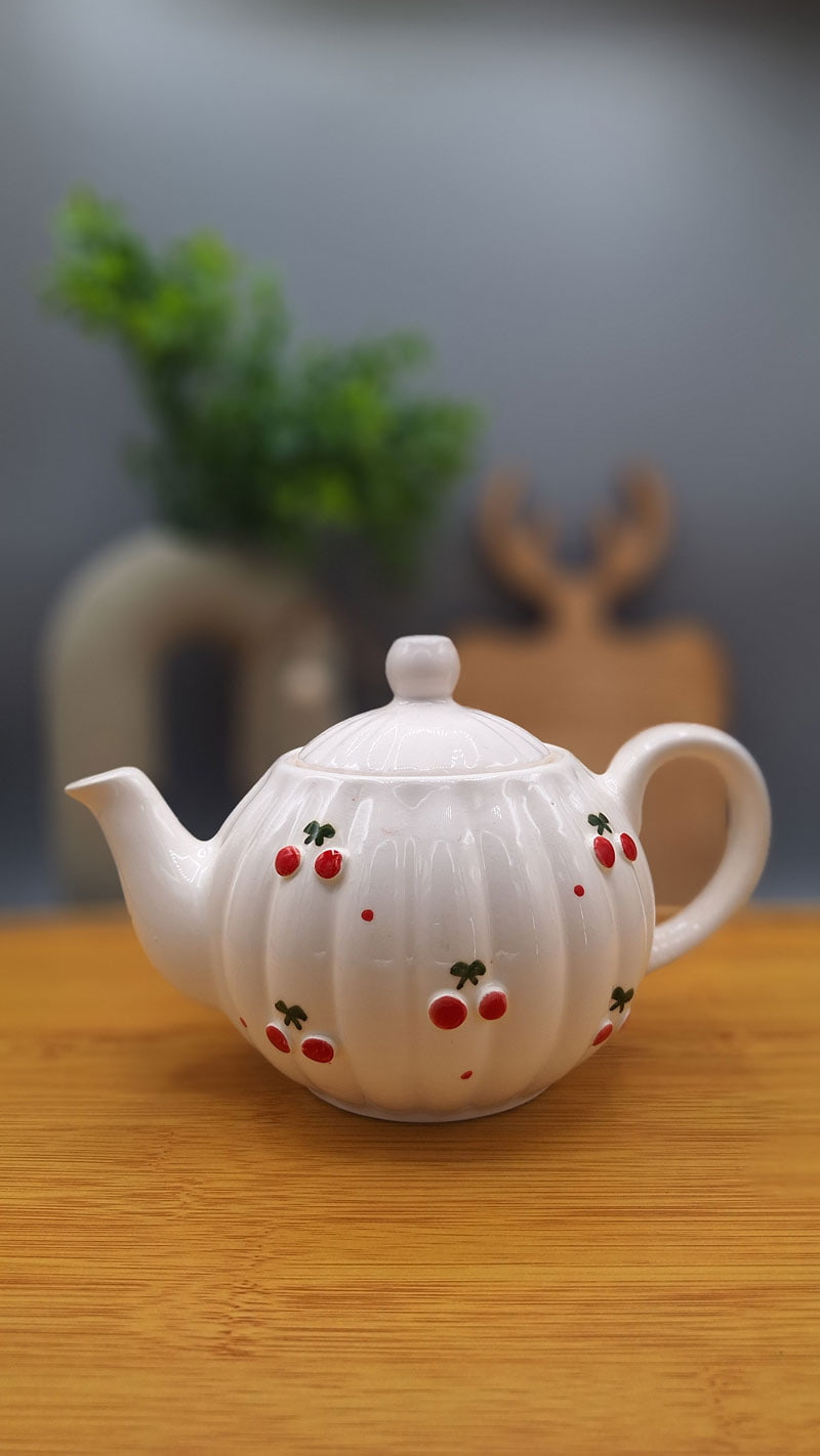 قوری سرامیکی بسیار زیبا با طرح آلبالو