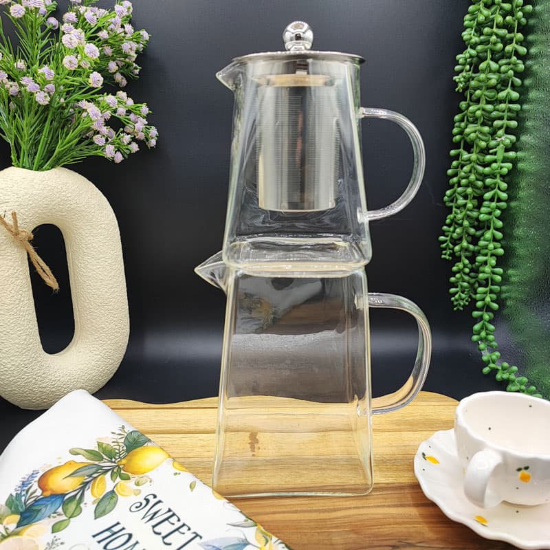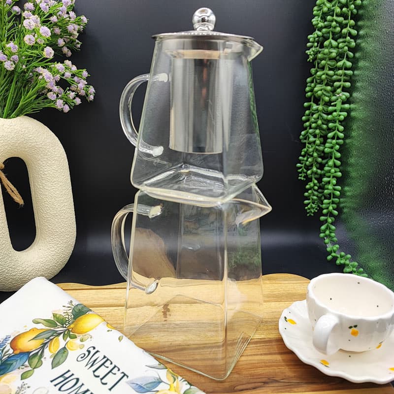کتری و قوری تمام پیرکس (بوروسیلیکات) چهار گوش با لوازم جانبی اصلی و با کیفیت. همراه با صافی استیل. بسیار شیک، زیبا، با کیفیت و قیمت مناسب
